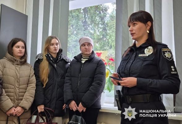 Майбутніх правників зустріли інспекторки з дотримання прав людини підрозділів Оксана Карпінська та Наталія Бондарчук. Вони розповіли про роботу чергової частини та поліцейського фронт-офісу – підрозділів, де відбувається первинне спілкування громадян з поліцейськими.
