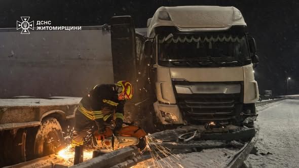 Допомога рятувальників знадобилася водію, який опинився затиснутим у кабіні вантажівки. Фахівці ДСНС деблокували його за допомогою гідравлічних інструментів та передали медикам, які госпіталізували його до лікувального закладу.