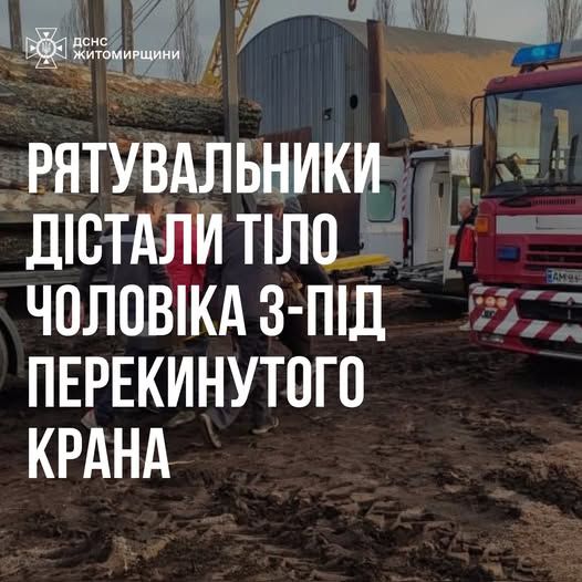 На Житомирщині рятувальники дістали тіло чоловіка з-під перекинутого крана
