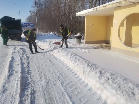 Для безпеки пішоходів працівники підрядних організацій вручну розчищають зупинки громадського транспорту, пішохідні переходи, в тому числі і надземні.