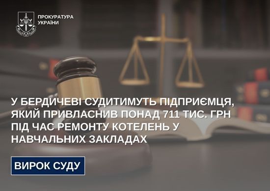 У Бердичеві судитимуть підприємця, який привласнив понад 711 тис. грн під час ремонту котелень у навчальних закладах