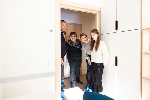 Через російське вторгнення ці родини втратили свої будинки на Херсонщині. Тепер вони житимуть у нових оселях у Житомирі, збудованих за фінансування уряду Естонії через Естонський центр міжнародного розвитку (ESTDEV). Цей проєкт став можливим завдяки підтримці уряду Естонії у співпраці з Фундацією Олени Зеленської, в межах масштабування проєкту «Адреса дитинства», Житомирською обласною військовою адміністрацією та громадою Житомира.