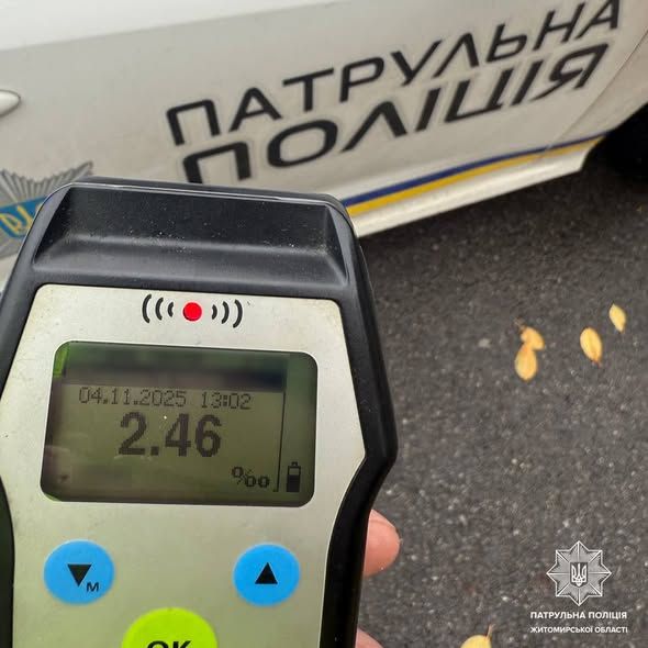 Під час спілкування з кермувальником Chevrolet патрульні виявили у нього ознаки алкогольного сп'яніння. Керманич пройшов освідування за допомогою приладу Драгер на місці. Результат — 2,46 проміле.