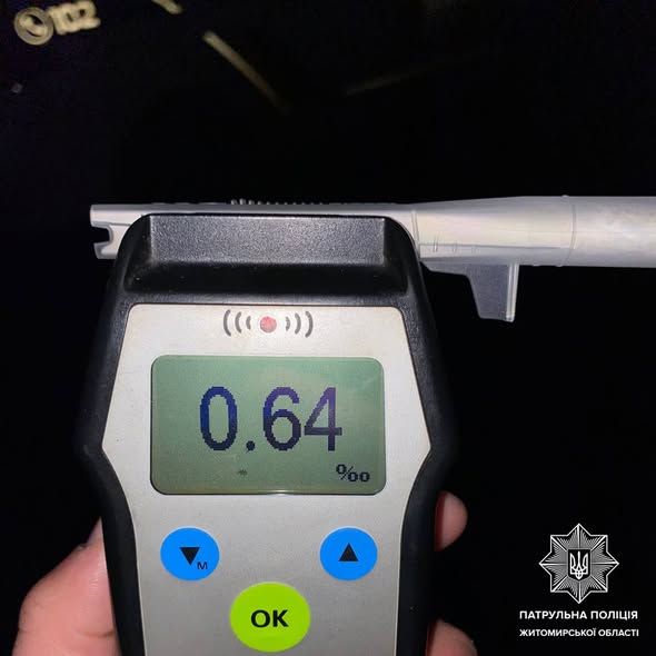 Спілкуючись з керманичем, виявили у нього ознаки алкогольного сп'яніння. Громадянин, запевнив що вживав алкоголь після ДТП та погодився пройти огляд на стан сп'яніння за допомогою приладу Драгер. Результат позитивний — 0,64 проміле.