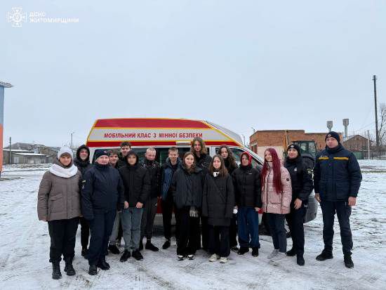17 січня на Бердичівщині фахівці ДСНС та правоохоронці завітали до Гришковецького ліцею, де провели урок безпеки для здобувачів освіти. До роботи був залучений мобільний клас з мінної безпеки.