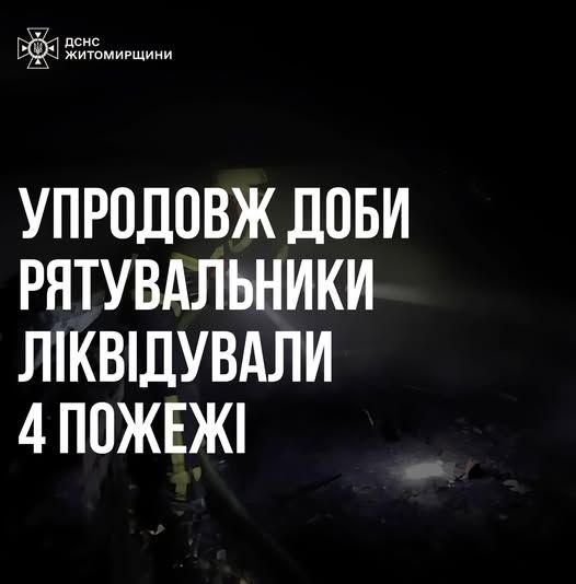 Упродовж доби рятувальники ліквідували 4 пожежі на Житомирщині