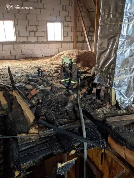 У Черняхові загорілася господарча будівля — полум’я охопило покрівлю та загрожувало перекинутися на житловий будинок. Завдяки злагодженим діям вогнеборців будинок вдалося врятувати. Вогонь встиг знищити 50 м² даху господарчої споруди.