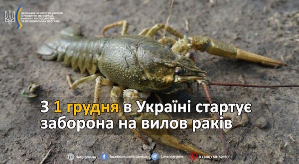 З метою збереження й охорони популяції раків у період їхнього спарювання, виношування ікри та першої линьки на водоймах України запроваджується заборона на їх вилов:
