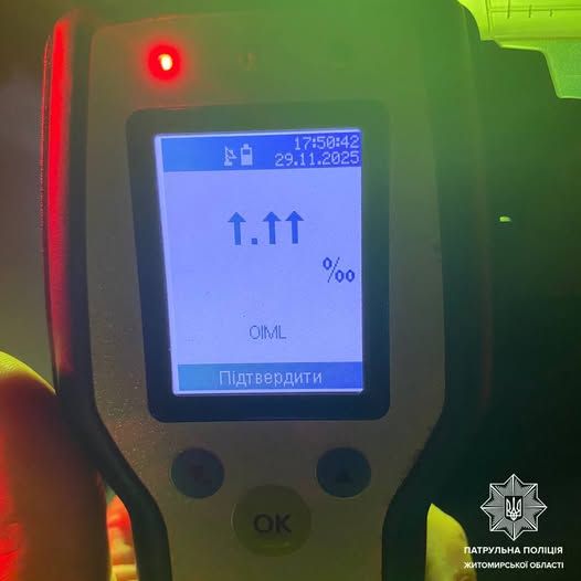 За листопад житомирські патрульні відсторонили від керування 84 водії з ознаками сп’яніння