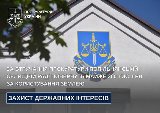 За втручання прокуратури Попільнянській селищній раді повернуть майже 300 тис. грн за користування землею