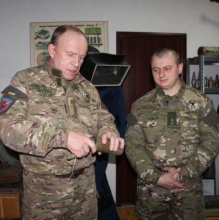 - Пастки, залишені там, не вдалось зробити навчальним матеріалом для нашого кабінету, оскільки ми відразу знищували їх дистанційно. Але отримали досвід ідентифікації різних типів мін. Наприклад, ПОМ-3, яка спрацьовує від рухів людини і при наближенні на певну відстань вибухає. Тобто міни із сейсмічними датчиками і традиційними розтяжками від 4 до 10 м, - ділиться та показує далі навчальні макети Володимир Кравчук. – Міна ОЗМ, яка вистрибує і вражає готовими осколковими елементами, коли будь-хто зачепить її розтяжку.
